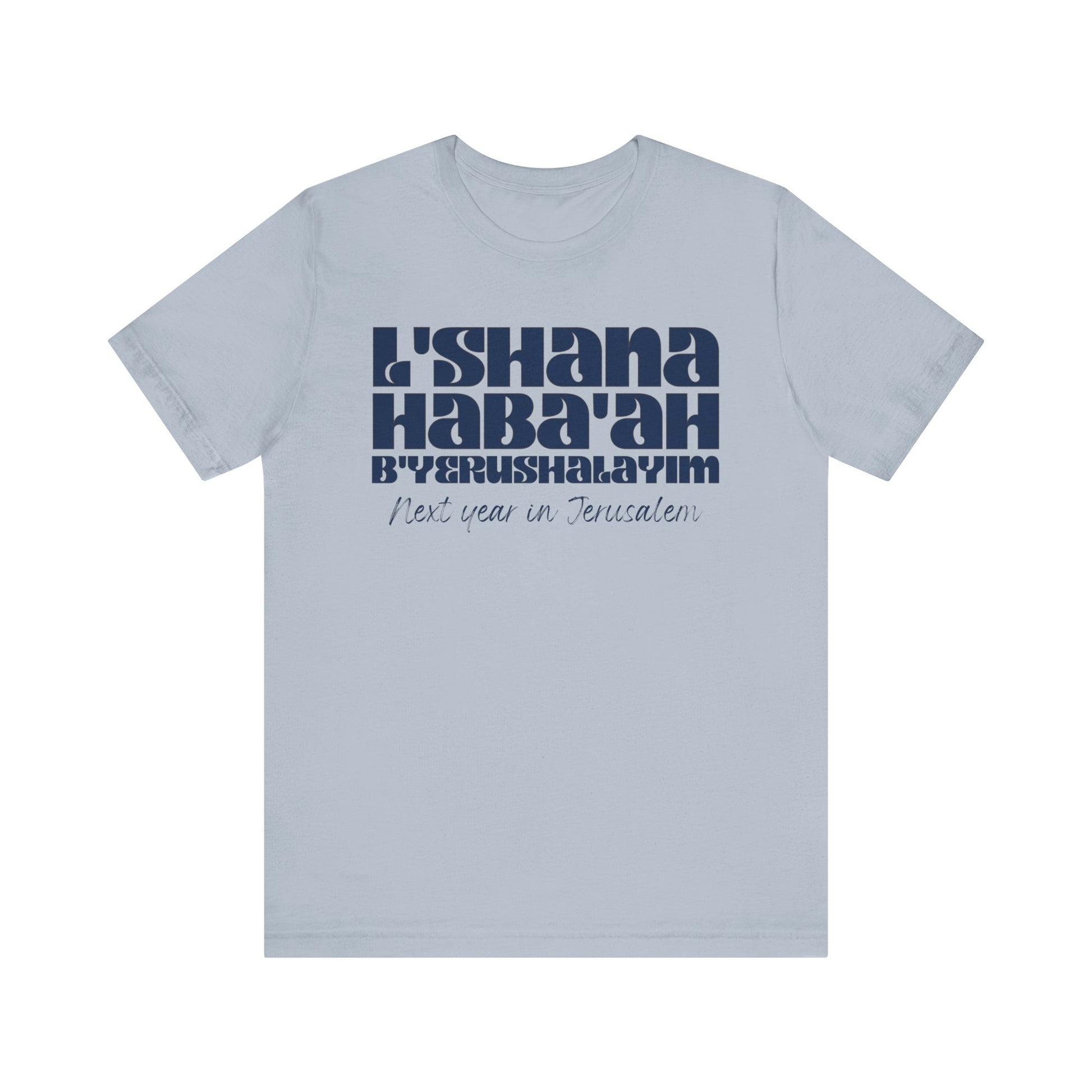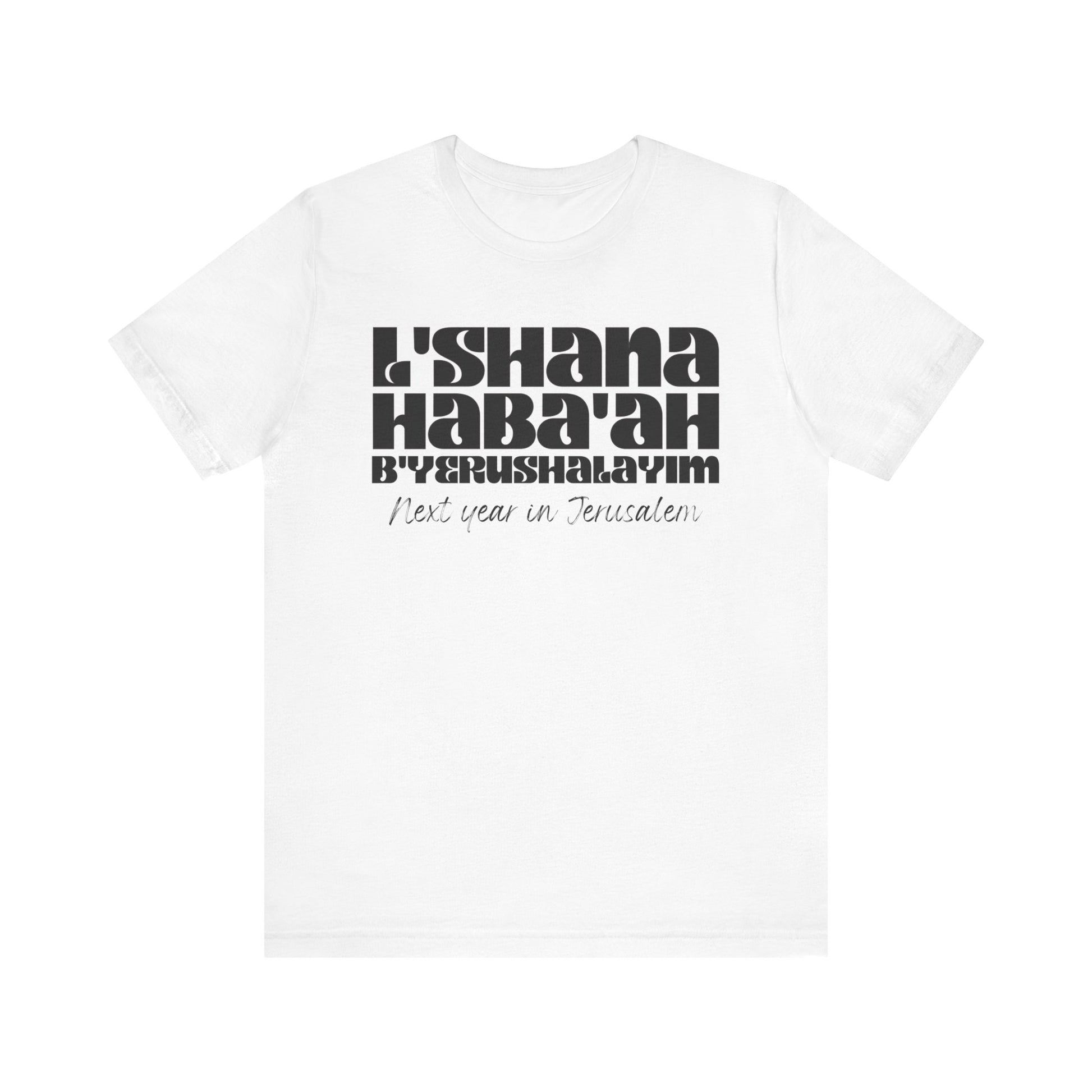The shirt is made of soft and comfortable cotton, with a classic fit that's suitable for both men and women. Whether you wear it to a worship service, class, or just around town, it's a great way to express your faith in a subtle yet meaningful way. Made with high-quality materials, this shirt is both comfortable and durable, making it perfect for everyday wear. Trust us, when you wear the L'SHANA HABA'AH Tee, you'll not only look great but feel great too knowing that you're spreading a positive message and showing your love for God!